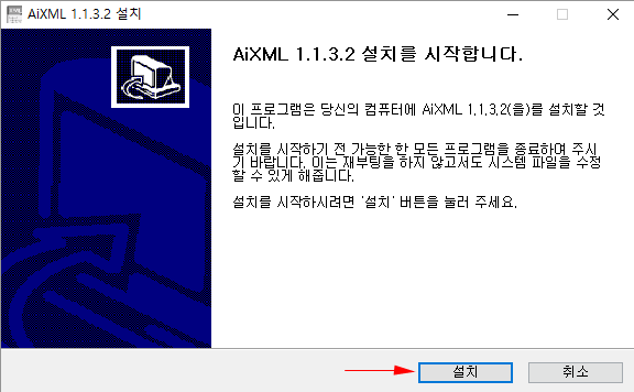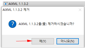 1. 삭제 할 AiXML 1.1.3.2 를 선택 하여 삭제 합니다.