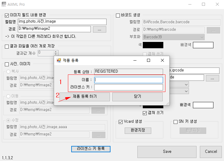 2. "이름","라이센스 키"를 입력, "제품 등록 하기" 버튼을 클릭 합니다.