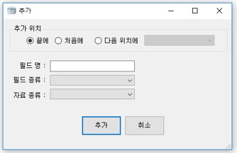 아래의 그림은 필드를 추가 할 때 보이는 화면 입니다.