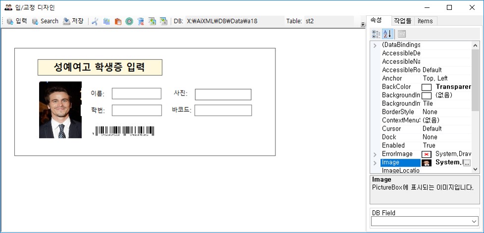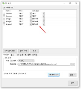 DB Table 이름: 자료를 저장할 Table이름을 입력 합니다.(영문 사용)