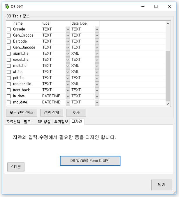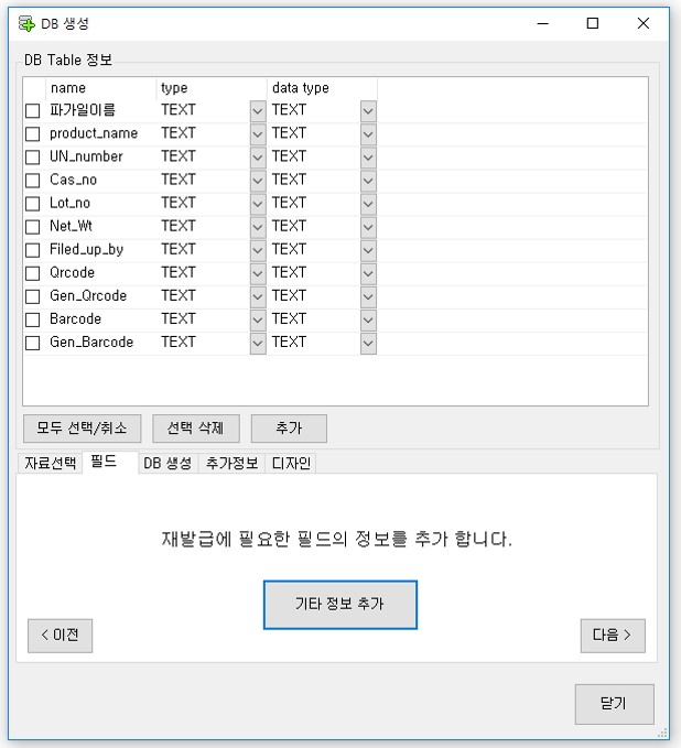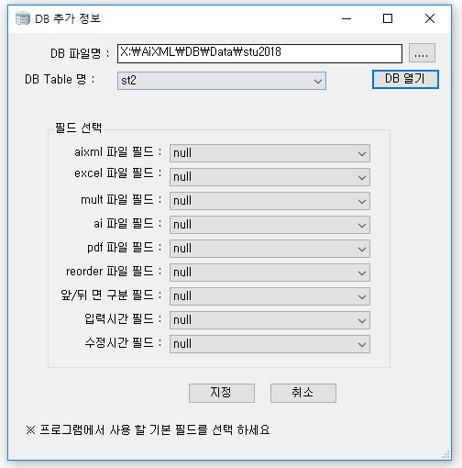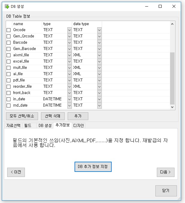 “DB 추가정보”는 검색, 재발급이 필요 할 때 빠르고 편리하게 처리 할 수 있도록 하기 위하여, 작업한 자료를 잘 정리 하여 저장 하는 기능으로 DB 생성 후에 지정 하는 기능 입니다.