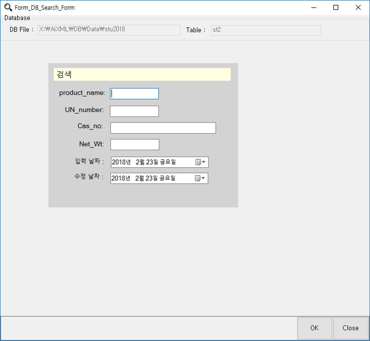 “Form 디자인”에서 디자인한 폼을 이용 하여 검색 합니다.