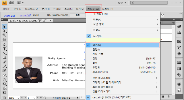 1. 일러스트 [윈도우]-[액션] 패널을 열어 줍니다.