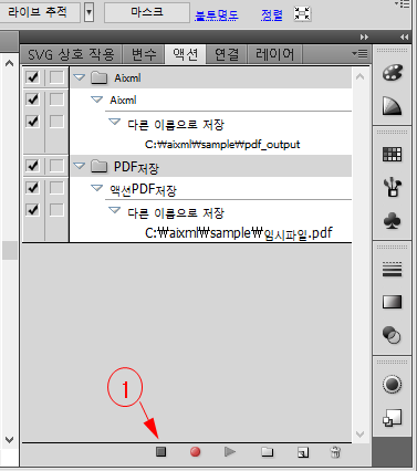 지금부터 액선을 지정 합니다. [파일]-[다른 이름으로 저장]-["임시파일PDF"]-[저장]을 하면 PDF로 저장 하는 액션이 만들어 집니다.